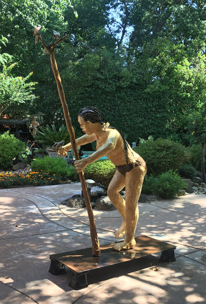 It's hard to get a closeup shot because her staff is 6 ft tall and it has three birds on it. I think she's one of my favorites, but it almost takes a movie to get it all in. Her face is having a conversation with the bird in her hand. Another bird on her shoulder. She's bare chested and has a big booty. |