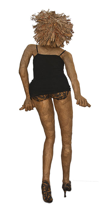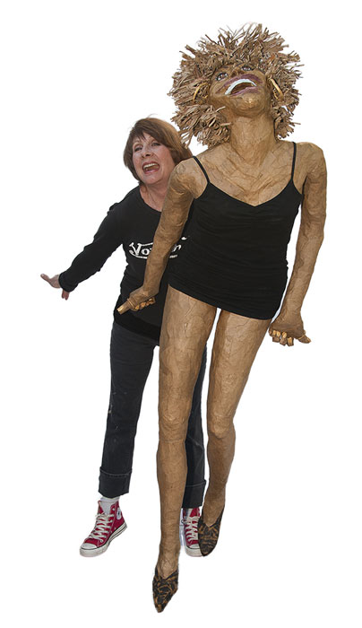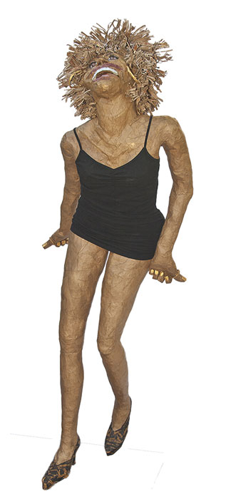height 5'9" x 27" w x 27" d Her name was suggested because she can actually pivot on her base. I gave her my favorite lion hair. She has sheet music at the back of her throat . Thumb rings and matching shoes and panties and earrings tossed with the hint of of her personal dance. Yep, she's a wild thing.
